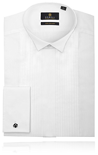 Best Seller! 100% Cotton, Extra Long Sleeve, Wing Collar, Pleated Front Dress Shirt by Alexander Dobell-17.5 Review